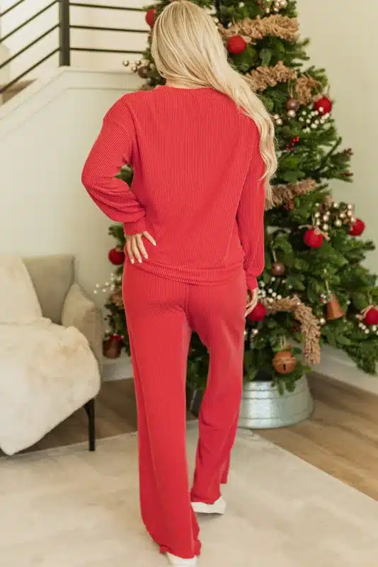 Fiery Red JOLLY Corded Long Sleeve Top and Pockets Pants Set