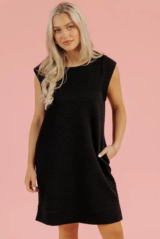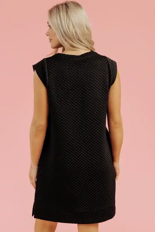 Black Textured Cap Sleeve T-shirt Shift Mini Dress