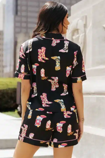 Black Western Boots Printed Short Pajama Set