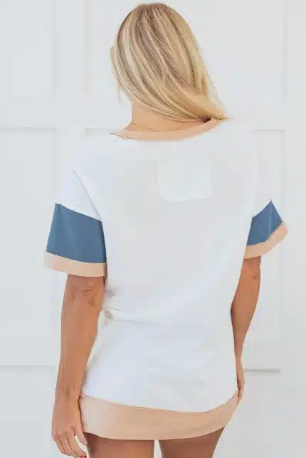 Multicolour Colorblock Patchwork Side Split Tunic T Shirt