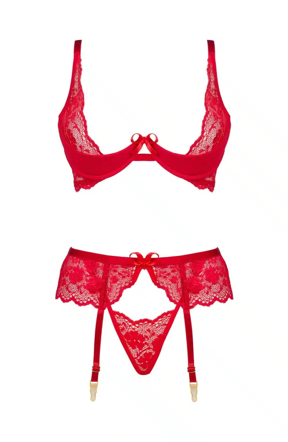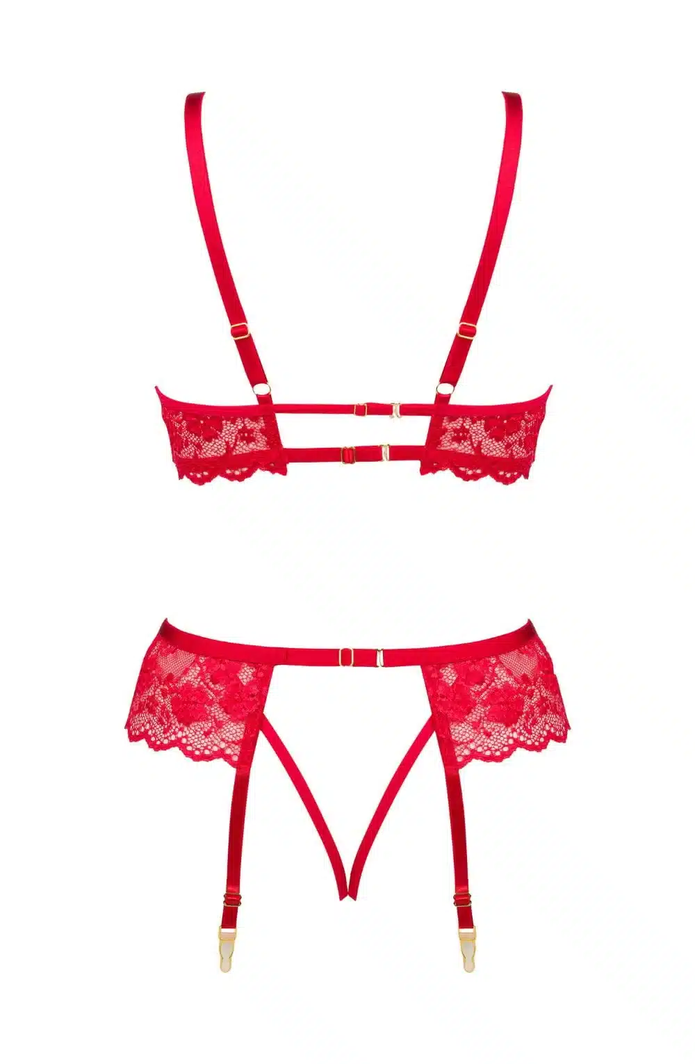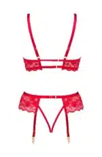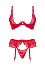 Discover the sensual Rose Set red, an exquisite lingerie set featuring a bra, thong, and garter belt. Crafted from delicate red lace, this alluring design enhances your natural beauty, making you feel feminine and sexy. Perfect for romantic evenings or as a special gift. Key Features: Luxurious Lace: Delicate and intricate for an elegant look. Deep Red Colour: Accentuates natural beauty and boosts confidence. Sheer Materials: Gently wrap the body, providing comfort and sensuality. Adjustable Straps and Fastenings: Ensure a perfect fit. Beautifully Decorated Bra and Thong: Elegantly highlight the body?s features. Comfortable Wear: Designed for all-day and night comfort. Elegance and Sophistication: Adds confidence and makes every moment special. Ideal Gift: Packaged in elegant wrapping, perfect for a present. The Rose Set red is a perfect gift choice. Its deep colour and subtle finishes make this lingerie both elegant and incredibly sensual, ensuring any woman feels special and cherished.
