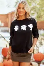 Black Halloween Ghosts Print Round Neck Sweatshirt