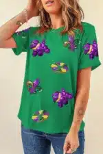 Bright Green Mardi Gras Sequin Patched Graphic Tee