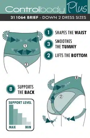 High waist thong. Firm compression providing a high level of support. Shapes the waist smooth the tummy and supports the back. Natural cotton gusset. Item comes packaged in a Control Body box.