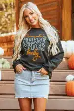 Dark Grey Halloween Pumpkin Spice Baby Graphic Textured Sweatshirt