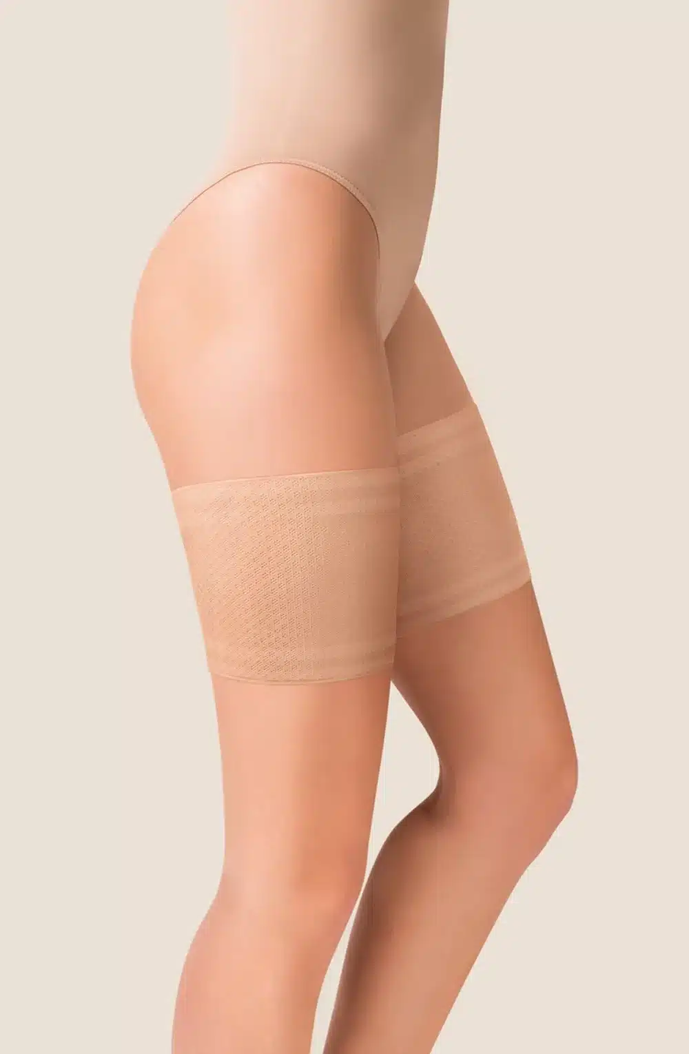 Pretty patterned mesh thigh bands made from the highest quality elastic yarns. Perfectly designed to be airy, self supporting and prevent chafing.? A must have accessory for those long hot summer days.? These thigh bands arrive in Gabriella packaging. PLEASE NOTE: This product cannot be sold or distributed to the United States of America?