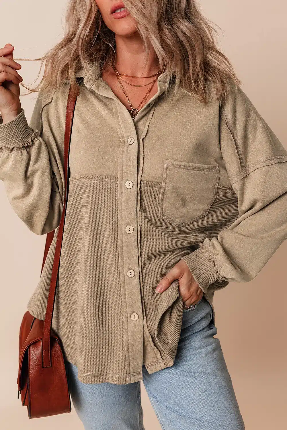 Goat Mineral Wash Textured Patchwork Loose Fit Shacket