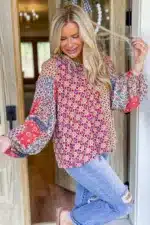 - The mixed print gives this blouse top a unique and appealing look.