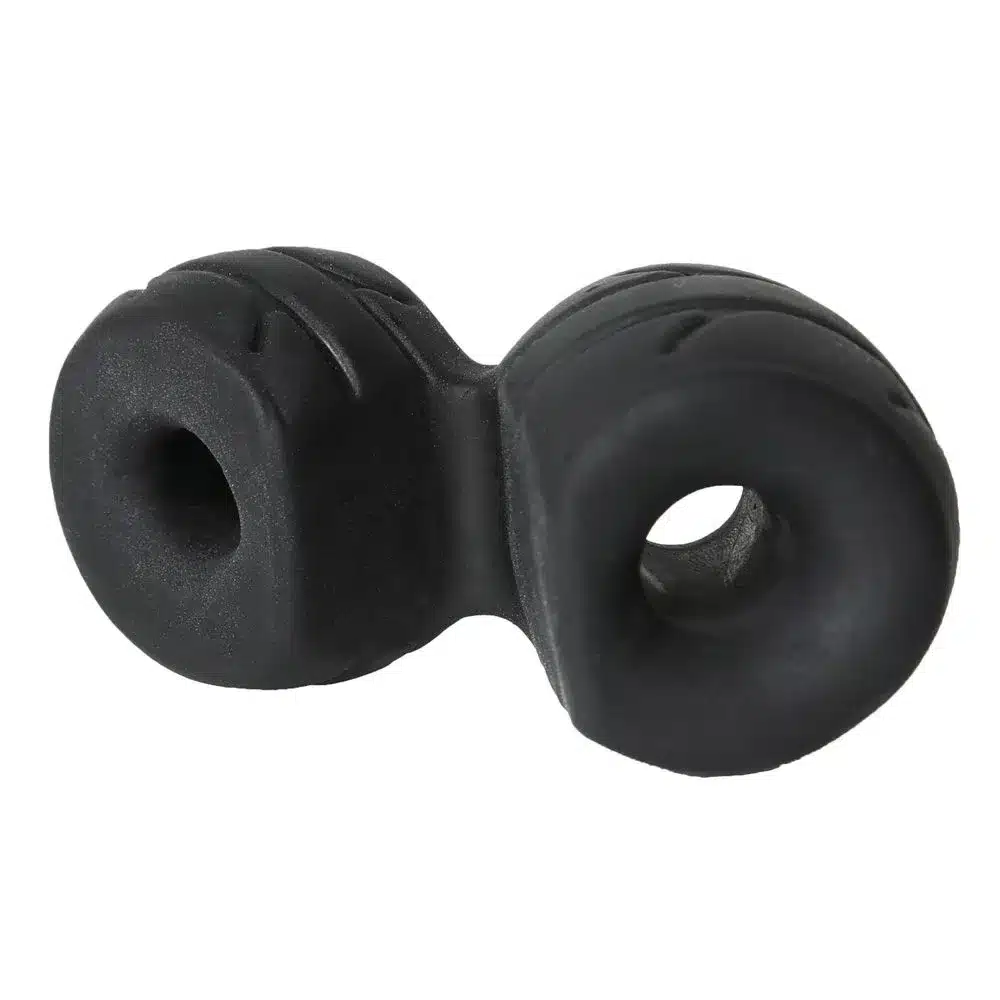 Unique combination of cock ring and ball stretcher. Super stretchy yet restrictive. It has a gentle yet firm hold on your cock while it adds extra heft and weight to your balls.