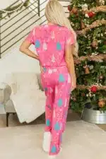 Rose Christmas Tree Print V Neck Tee and Pants Lounge Set
