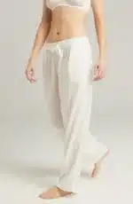All-new relaxed-fit trousers in lightweight organic cotton that?s both cosy and cooling.? A classic pyjama trouser silhouette, adorned with signature Nudea detailing and a drawstring waist for maximum comfort and ultimate lounging possibilities. Pair with The Midi Shirt available separately. Side embroidery detail Drawstring waist Side pocket detailing Relaxed fit 100% natural Nudea sleepwear is crafted with fully natural materials from the fabrics right down to the threads. Every inch of these garments is 100% OEKO-TEX certified Cotton – even the labels.