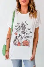 - The graphic tee is a fun and spooky choice for Halloween enthusiasts.